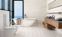 חדרי אמבטיה מעוצבים: קרמיקה דמוי פרקט